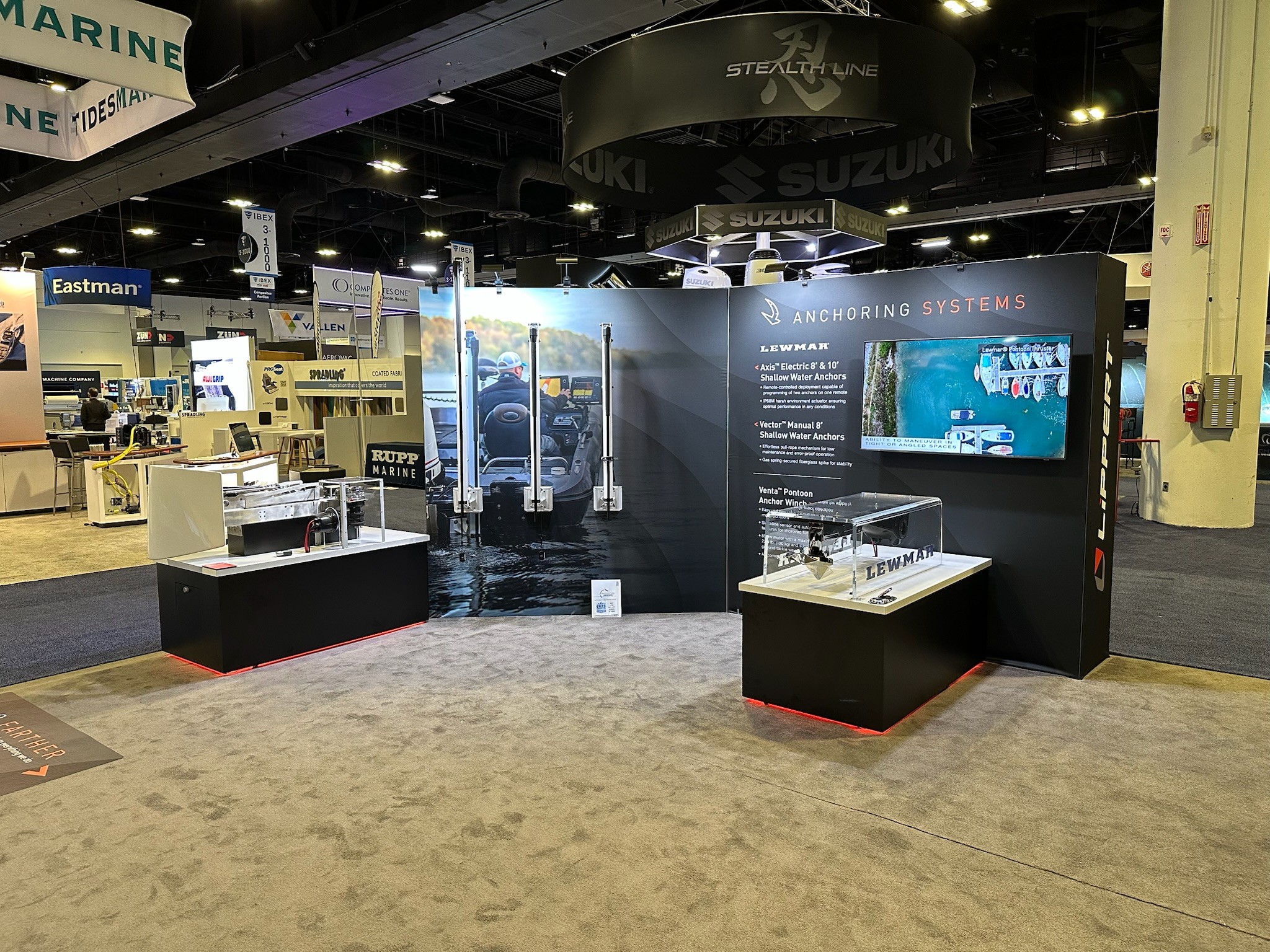 "Stop and stare. I went into the show on Sunday to help with setup — maybe 50% done — and saw two competitors just standing near our display looking. I walked over and asked 'what do you think boys?' They said 'man, you guys show so well, you look like the complete package even though you have numerous brands in the booth.' Over the next three days we had customers, suppliers, and yes, competitors all compliment the display. A true testament to who we are and what we offer." — Marine Sales Lead